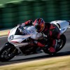 F4 RR的車頭部分無(wú)疑是一項(xiàng)高科技杰作:一對(duì)直徑為320mm的碟剎盤配置了當(dāng)前技術(shù)最為先進(jìn)的Brembo放射型卡鉗。錫材質(zhì)的前叉表面非常光滑,使得Ohlins減震伸縮自如。減震系統(tǒng)的控制通過(guò)特殊的操控軟件來(lái)實(shí)現(xiàn),讓車輛在絕大多數(shù)路況下都能獲得最佳的減震反饋。Marzocchi前叉和Ohlins減震器的優(yōu)秀性能在任何情況下都超乎駕駛者想象。